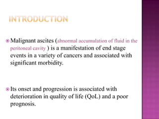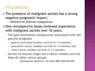 Malignant ascites thus carries a grave prognosisAlthough the clinical outcome cannot. Resistant or refractory ascites are one of the end-stage liver disease symptoms before death. Ascites - stage 4 cancer.